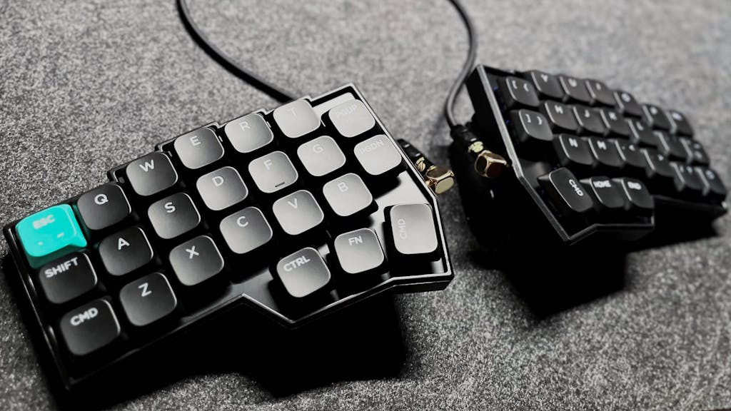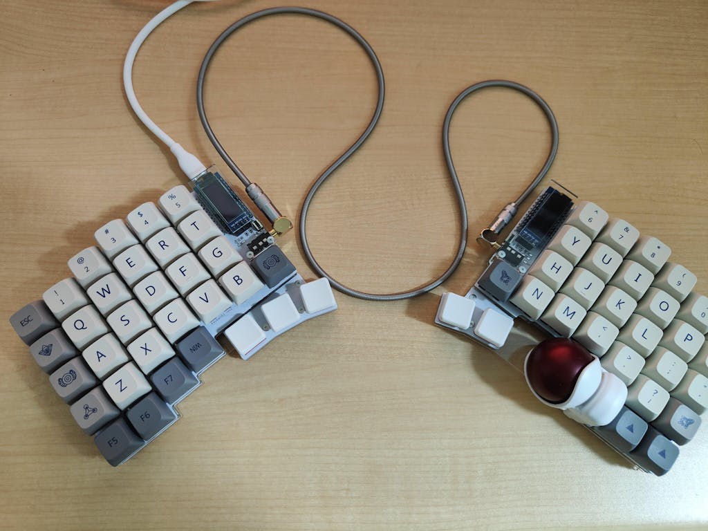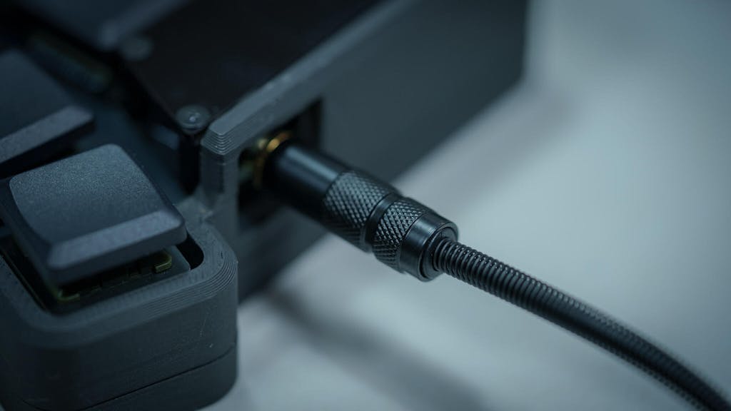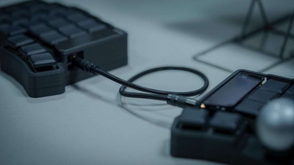 分割式キーボード用のTRRSケーブルです。L型コネクタを採用しているため、デスク上でケーブルが邪魔になりにくく、すっきりとした配線が可能です。